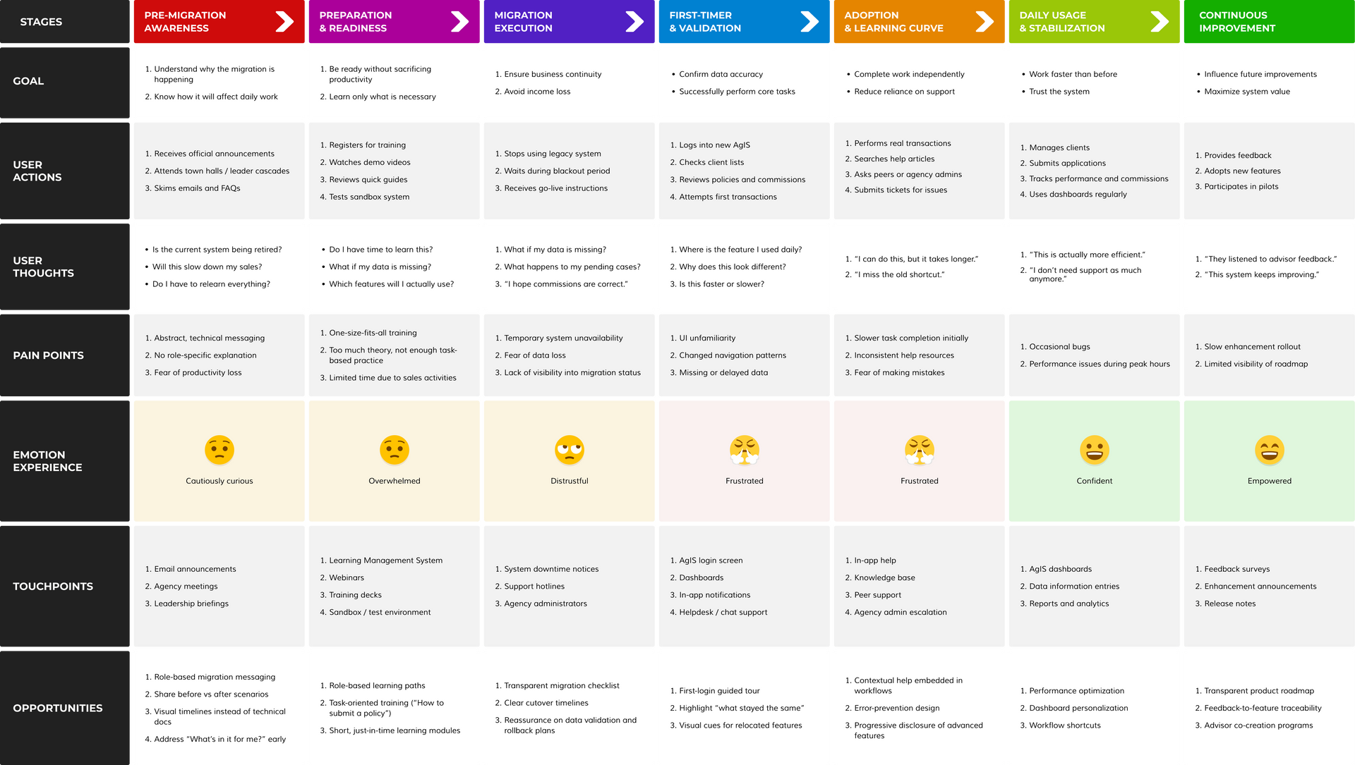 The Agent Information System Tech Migration Project is a strategic technology renewal project aimed at replacing the organization's legacy agency management platform with a scalable, cloud-ready, user-centered, and secure enterprise system.