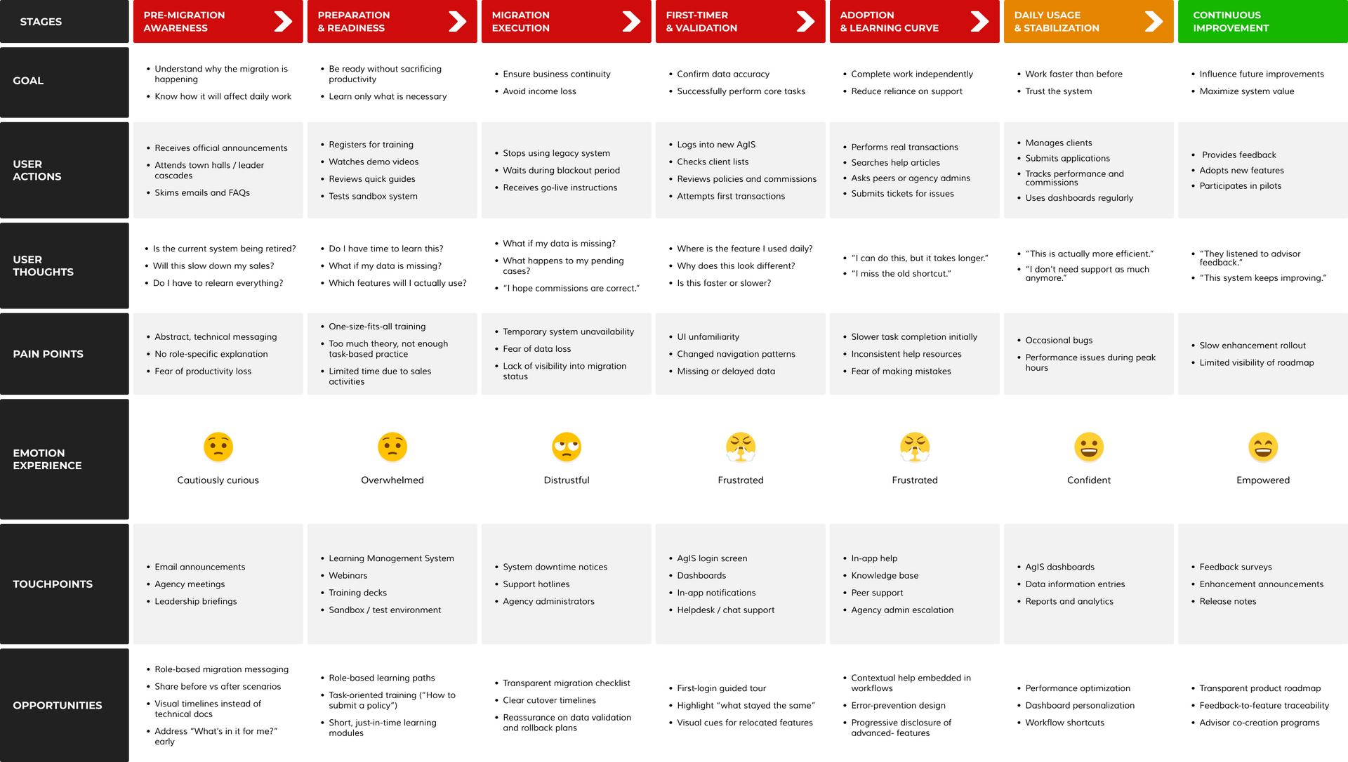 The AgIS Tech Migration Dashboard redesign streamlines the migration process into a data-driven, user-focused operation.